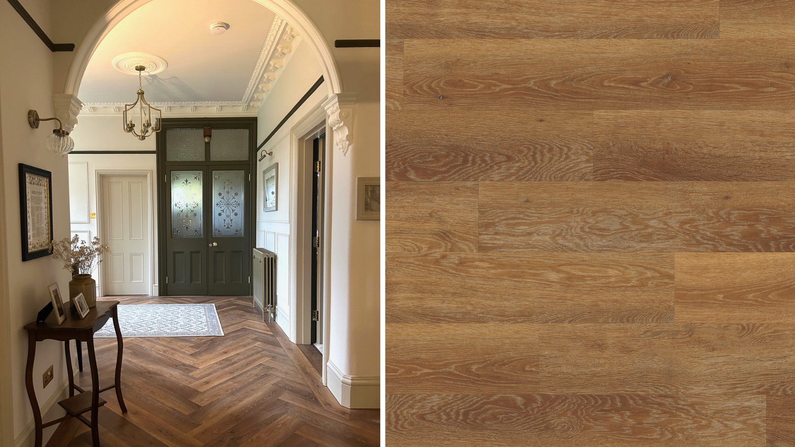 To visually connect the main living spaces, Emma chose to install Classic Limed Oak flooring from the Knight Tile collection throughout the downstairs as well as on the upstairs landing and into the family bathroom. Emma has enhanced the traditional beauty of this classic oak design, with its subtle copper tones and limed finish, by opting for full-sized planks in a herringbone pattern for a more contemporary style.