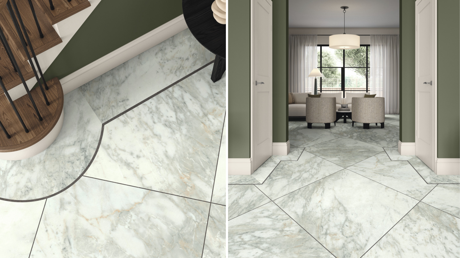 Create a border around a stairwell with Sillano Marble, a luxurious new look inspired by marble quarried in Tuscany.